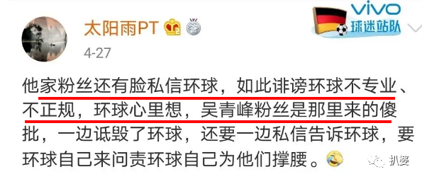 杨宗纬粉丝:吴青峰粉丝你们等着吧,看环球怎么收拾你们。