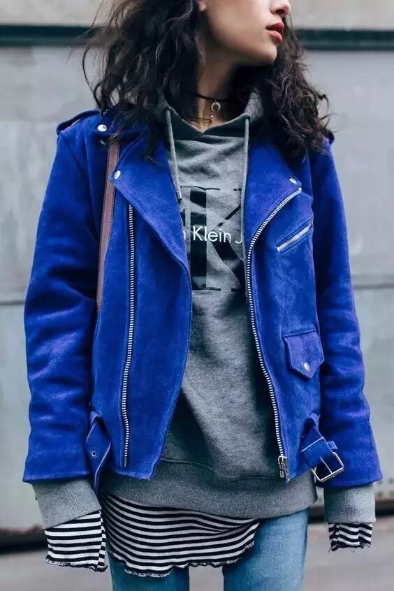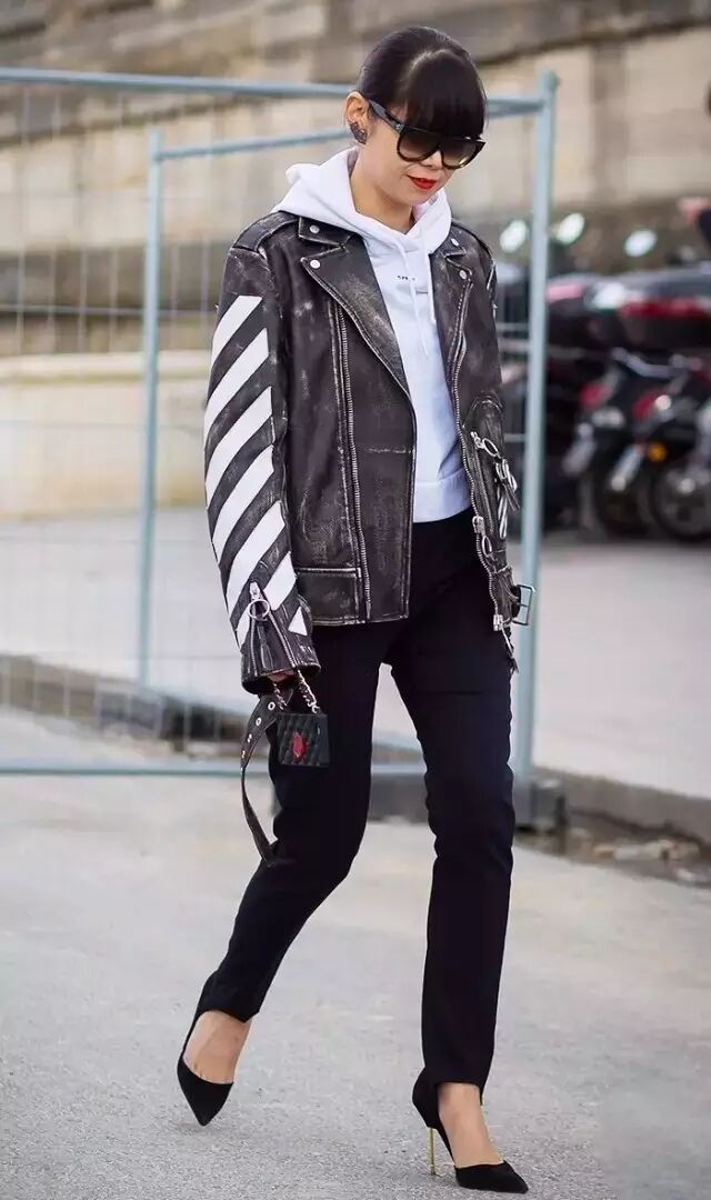 机车夹克搭配卫衣,你就是街头最有个性最酷炫的那一位~▼