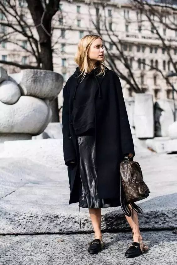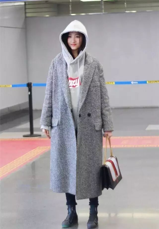 大衣和卫衣同色系的也是一个机智的搭配,非常的和谐顺眼~▼