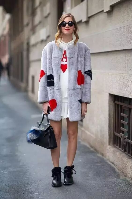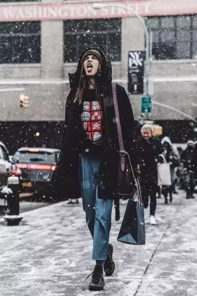 羊羔绒和卫衣搭配也很抢眼,注意卫衣的长度尽量不要超过外套,短款卫衣有利于拉长下半身比例~▼