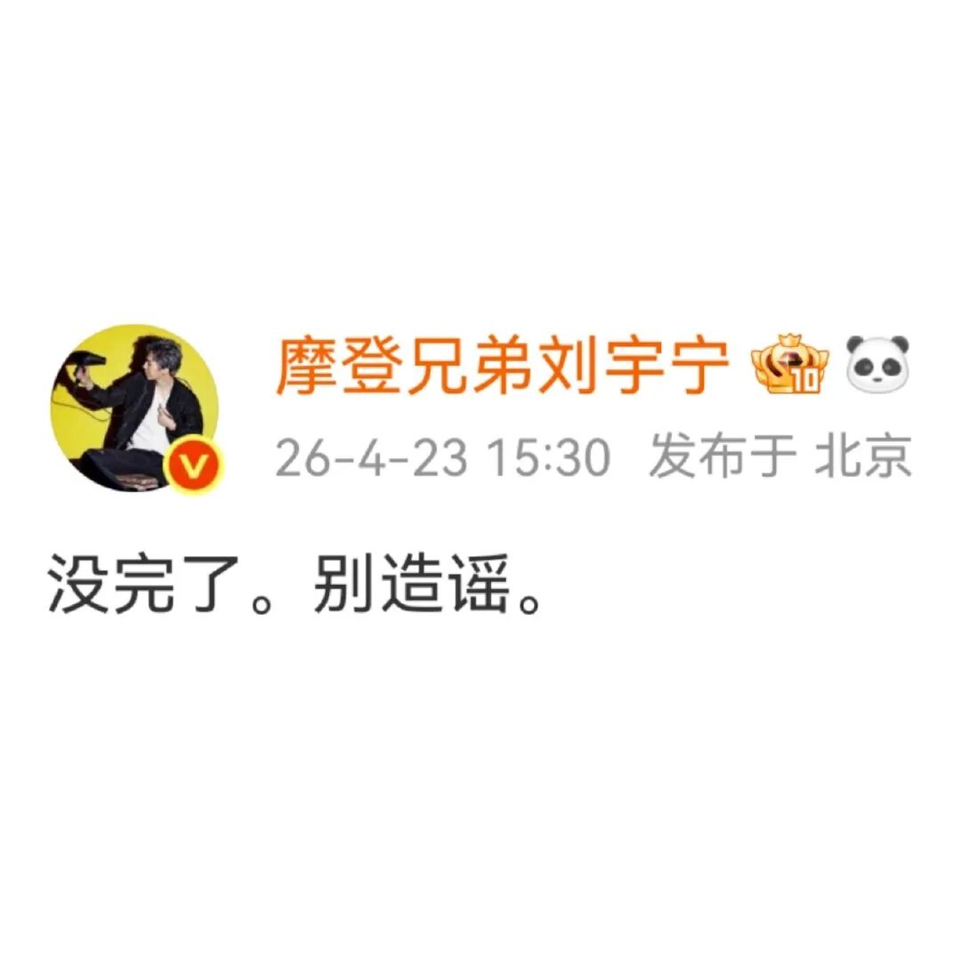 面对这种无稽之谈,宋祖儿工作室发了声明,但刘宇宁觉得不够解气。4月23日,他亲自下场,甩出六个字:“没完了。别造谣。”