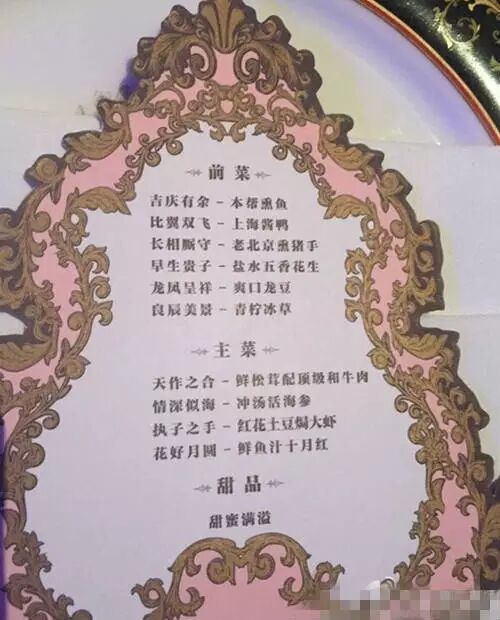 进行了调整。”另外,这次婚宴用的餐具也都是订制款,餐盘上都印有