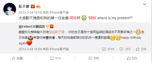 生日祝福也是相当甜蜜,不知道的人还以为他两结婚了呢。