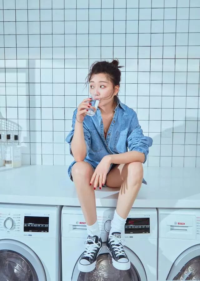 40岁的殷桃真正放开了,这次穿搭不仅时尚而且性感。一件牛仔色调的衬衣,被她解开扣子穿,彰显出女人专属的魅力与韵味。她的下面穿着一条超短裤,脚上搭配了一双黑白帆布鞋,配上高筒的白色袜子,满满的青春时尚感呈现在人们的视野之中。坐在洗衣机上的她,大长腿被完美的展露出来。