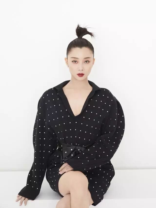 这件衣服的肩部以及整体看来有点oversize风,完全不会紧绷在身上而产生不舒适的感觉,反而上身十分慵懒随性。上面的白色波点设计,也为整体的黑色起到点亮的效果,不乏美观与时尚。领口的设计样式,显露出殷桃修长的脖颈线条和迷人的锁骨。短款的裙摆剪裁,让殷桃的大长腿呈现在人们的视野之中,大红唇的选择也让她看来十分高级。