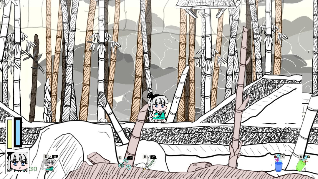 这是一款有少许回头探索要素的横版闯关游戏。你将扮演妖梦,一路向前并解锁新能力,运用近、远程攻击与爬墙、冲刺的灵活身手突破敌人与地形的阻碍,最终解决问题。