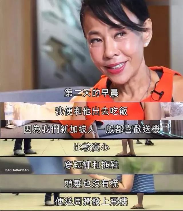 吃完晚饭的第二天发嫂送发哥上飞机的时还是穿着T恤短裤,脚上一双人字拖,顶着一头蓬松短发就出现在周润发面前。但就是这样,发嫂还是吸引到了发哥这位当红巨星。