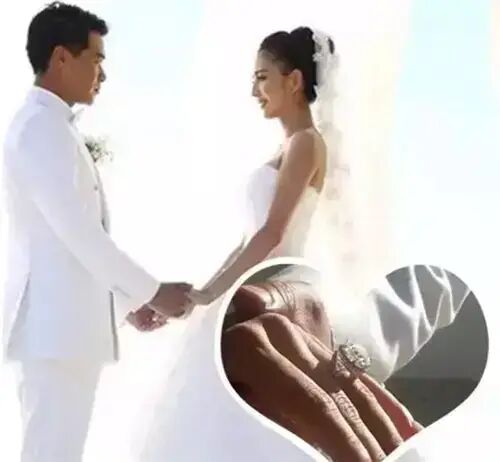 同年,佟丽娅与陈思诚在大溪地举办了婚礼,她看着手中8.8克拉钻戒,认定自己嫁对了人。