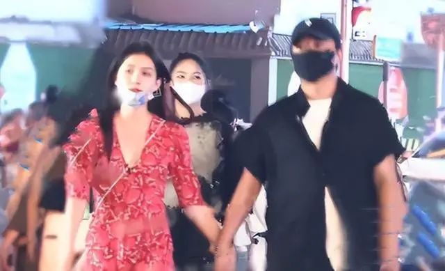 两人被拍当晚,女方穿了一件红色碎花裙,其深V造型显露出事业线,长度刚刚好的三分长裙,把又白又直的美腿修饰的完美至极。