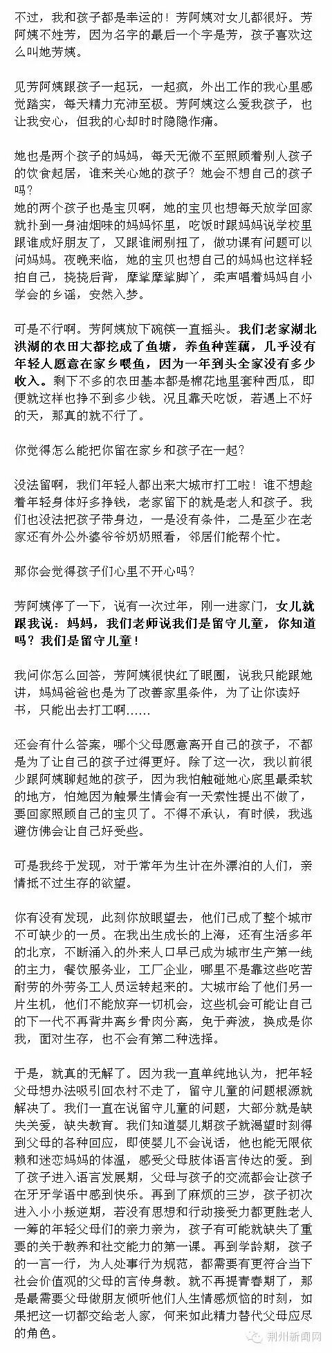 《中国留守儿童报告之哪有父母愿意离开孩子》全文: