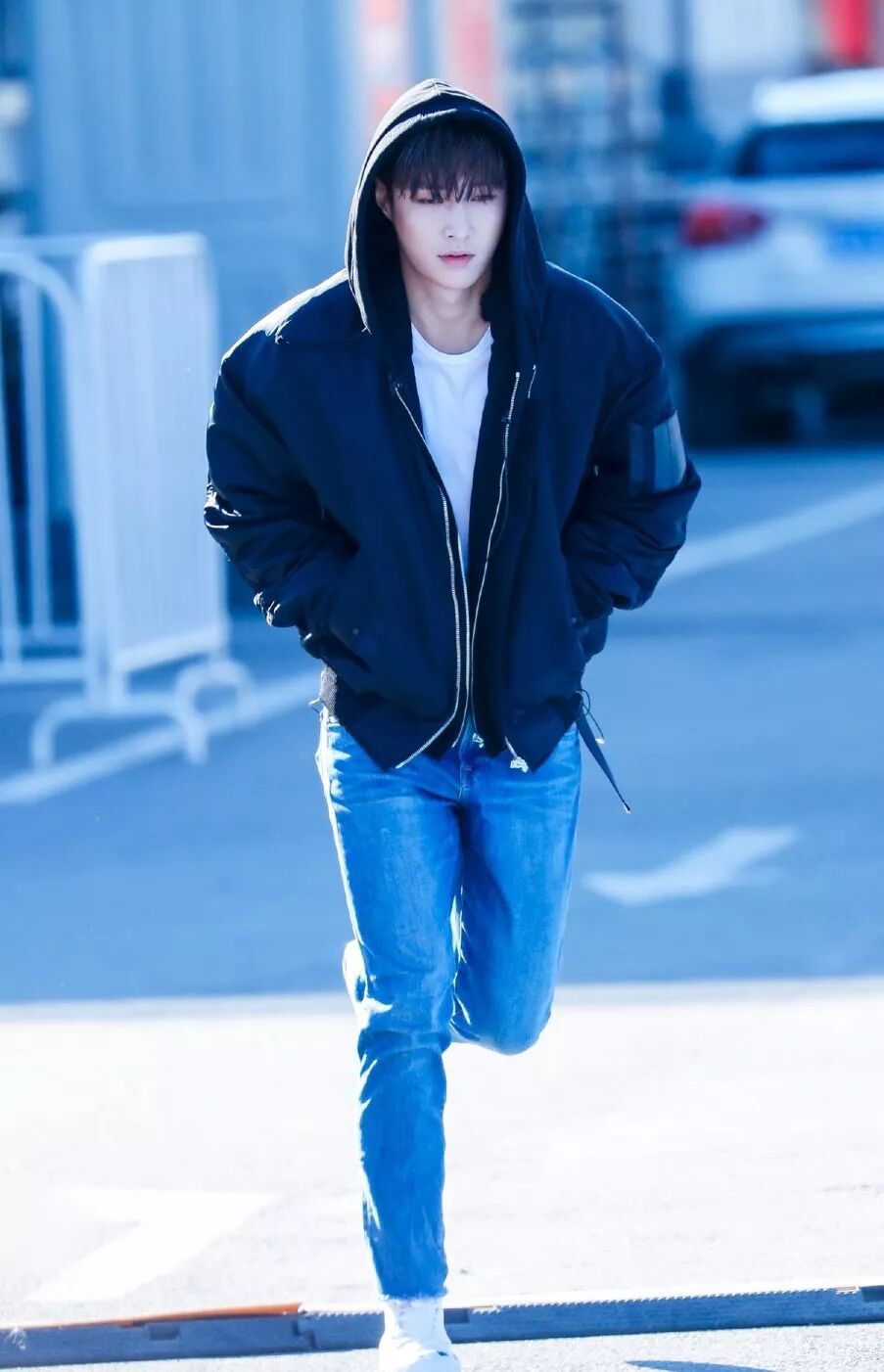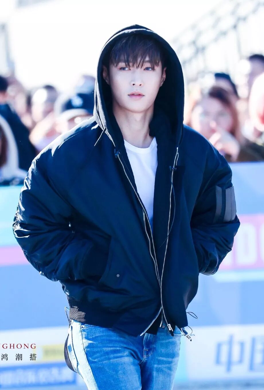 张艺兴公告牌上班图,连帽飞行员夹克搭牛仔裤,酷酷的感觉。