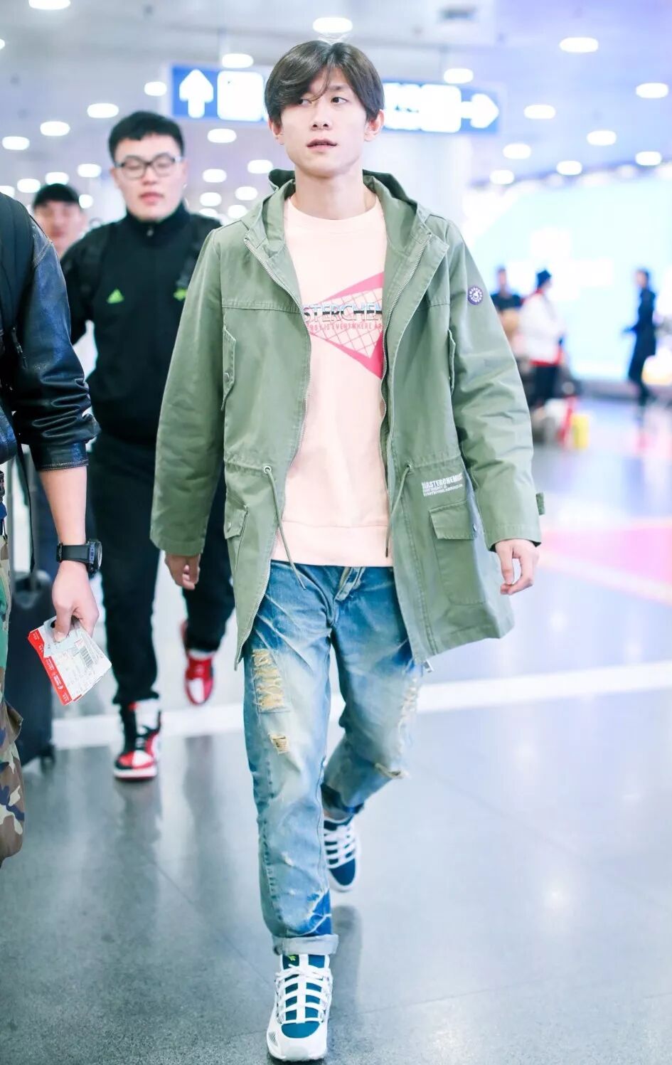 张一山现身北京机场,粉色卫衣搭军绿色外套,气场全开的山哥。