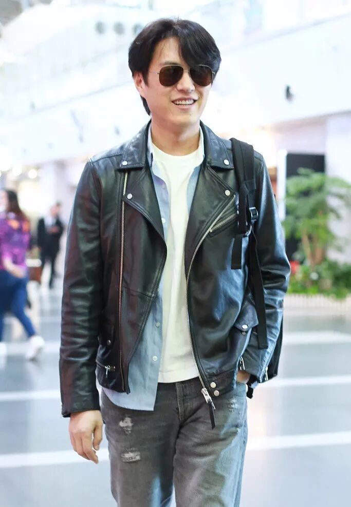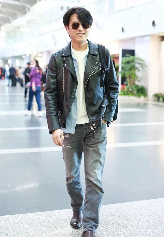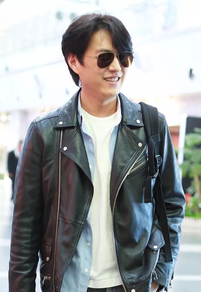 靳东现身北京首都机场,一身黑色皮夹克内搭蓝色衬衫和白T的造型,颇具“港式“潮男范儿。