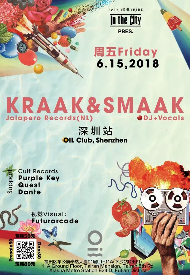 灵族将在中国地下派对的大本营出发,6月15日为深圳OIL带来一对国际级的Disco歌唱组合!刚结束欧洲和美国巡演的Kraak&Smaak将首次来到中国,以DJ和歌手的组合形式,结合来自深圳本土传奇Cutt Records的 艺人:Purple Key,Quest和Dante 一起点燃派对气氛!灵族精灵Futurarcade充满幻想的视觉装饰将为深圳最前沿的夜场OIL带来一场与众不同的Nu Disco派对。来跟灵族In the City派对一起享受这位国际大牌Disco制作人的魅力吧!