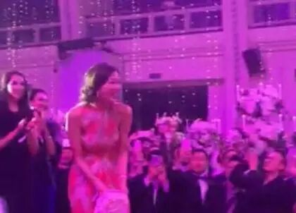 杨颖抛出的花球跳过了李冰冰和林心如,最后选择了志玲姐姐,或许这正预示着志玲姐姐的良人已经出现了。抢到手捧花的林志玲看起来很开心,她应该也是想嫁人了。