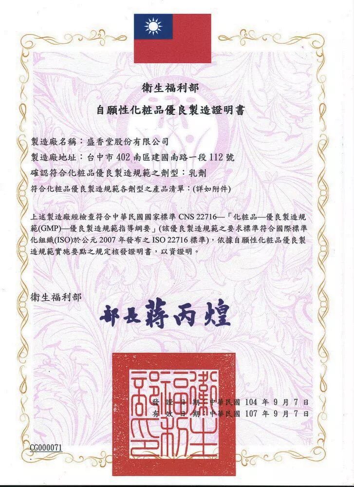 台湾第一家化妆品厂盛香堂旗下的主品牌,
