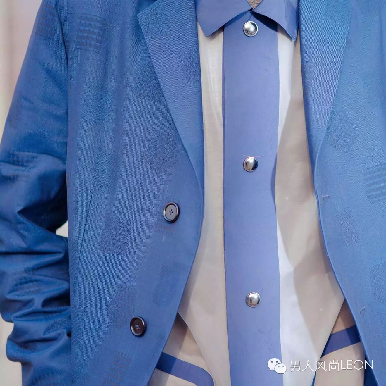 皇家蓝拼接Techmerino顶饰提花单褶大衣显型男气质,而独特的“透明”图案层搭设计则形成视觉上的三维立体感,展现出都市型男轻盈而昂扬的自由活力。透明PVC衬衫领大衣采用了最新材质,不仅保证了早春抵御风雨的自然需求,更在视觉和触觉上给人以遐想的空间。