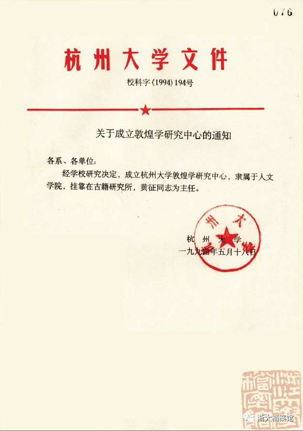1994年,杭州大学成立了国内高校、社科院所第一个敦煌学研究中心。同年,由蒋礼鸿先生与其5位弟子(黄征、张涌泉、俞忠鑫、方一新、颜洽茂)编辑的《敦煌文献语言词典》由杭州大学出版社出版,共36.3万字,收条目1526个,总括了敦煌语言学的研究成果,为汉语史研究提供了丰富的资料。1997年,黄征、张涌泉先生完成了《敦煌变文校注》(1997年5月,中华书局出版),作为郭在贻先生生前制定的“敦煌学三书”的第二种。1996年,在北京举行的教育部首届人文社会科学优秀成果颁奖大会上,原杭州大学的敦煌学著作获一等奖二项、二等奖一项。1998年,在教育部第二届人文社会科学优秀成果评奖中,浙江大学的敦煌学著作又获一等奖一项。