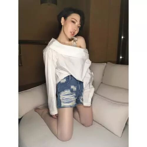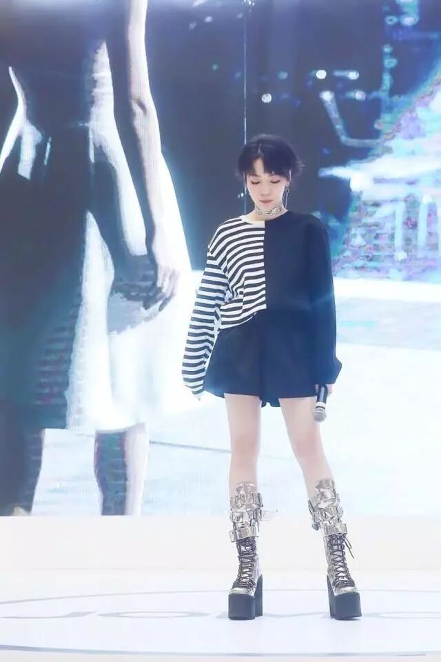 蹲在地上凹造型,我滴妈呀,这裤子真的是太短了,难怪会被网友吐槽“三角裤下直接穿靴袜,还不如不穿呢”,你觉得呐?