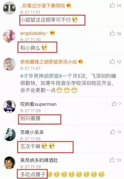 留言中,有对爽妹子的心疼,也有污言秽语,同时还有有网友表示:复合为什么胡彦斌不发微博澄清或承认:就如网友所说:@若筱夕:他哪里爱你了 你看他发微博就只记得护粉丝,什么都是你自己扛 能别在一起吗眼睛瞎了才看上这种又丑又花心的人 。