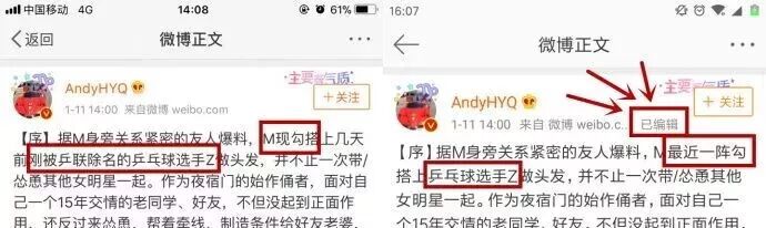 甚至还有网友做了黄毅清爆料文的前后对比图↓