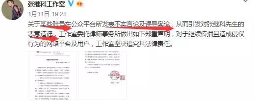 昨天还因为自己的微博引导了无数网友去锤张继科,结果继科工作室立马就出了一纸严正声明: