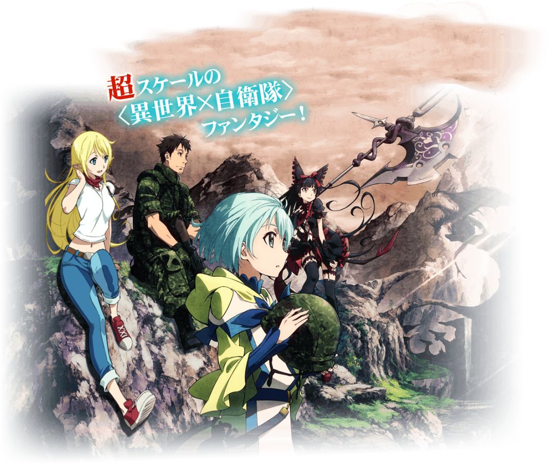时值同人志贩卖会开始之日,死宅兼自卫队军人伊丹耀司,前往银座享受难得一遇的庆典,然而在东京的银座突然打开了“门”,并从中出现了大量的怪物与骑士组成的军队,杀死了大量的平民,后称此事件为“银座事件”。在事件发生后的七天,击败敌方军队并顺利攻占异世界的“门”的日本政府,将另一边的幻想世界称为“特别地区”。同时派出自卫队,前往另一个世界,伊丹耀司也在其中。在那里,他将与异世界的人类、精灵和亚神美少女相遇,并遇到一系列奇幻的冒险。