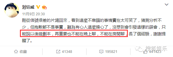 刘恺威回应:咬定就是在对剧本,出轨什么的太可笑了。