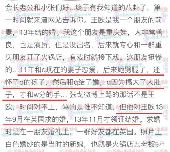 先是有爆料称11年张戈和q现在的妻子谈恋爱,结果妻子劈腿q并且怀孕,导致q和w也分了手。