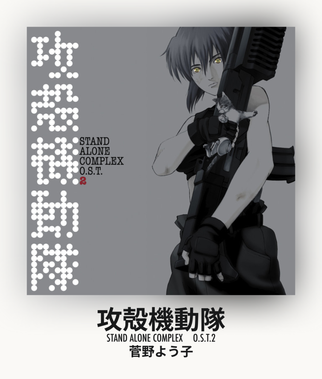 菅野洋子:集作词家、作编曲家、音乐制作人于一身的艺术家。她的音乐创作涉猎广泛,不仅涵盖电影、电视剧、商业广告、动画及游戏等领域,同时也为众多艺术家提供词曲并担任音乐制作。其负责的动画配乐代表作包括:《星际牛仔》、《创圣的大天使》《超时空要塞F》(2008年)、《攻壳机动队 STAND ALONE COMPLEX》(2002年)等。许多人表示「社会对动画音乐的评价,是自菅野洋子出现后才改变的」。