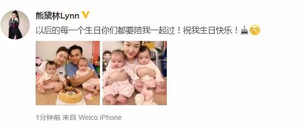 10月10日晚,熊黛林晒出一组照片庆祝自己38岁生日,熊黛林配文称:“以后的每一个生日你们都要陪我一起过!祝我生日快乐!”言语之间满是幸福。