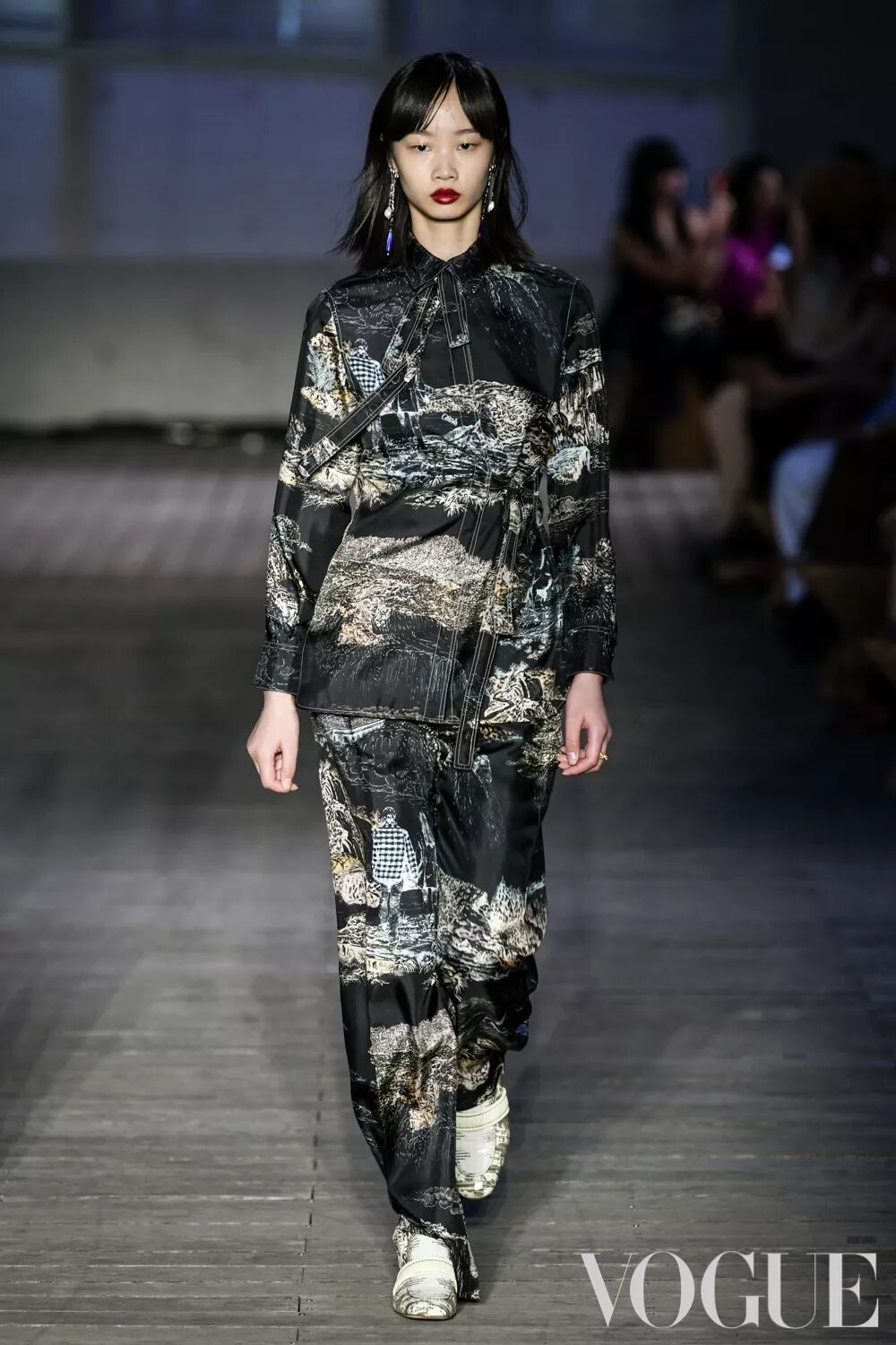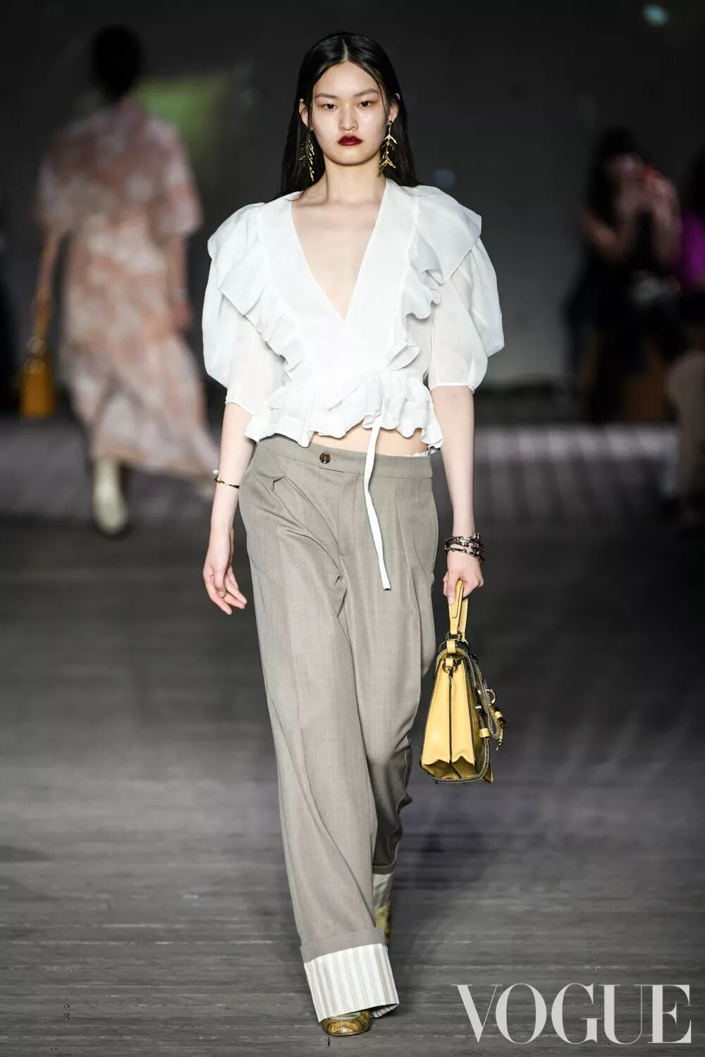 Ramsay-Levi女士借助这一系列,表达她个人对中国第五代电影的热爱。穿着二元化双重性以套装的形式出现表现,优良的精工剪裁和法式的细腻浪漫飘逸激化制造中性化的碰撞——从腰间收紧的西服外套,到睡衣风格的衬衫搭配宽松裤装;裤装以细腻丝绸、法式木刻版画“toile de jouy”印花面料和褶饰提花等多元风格面料呈现。