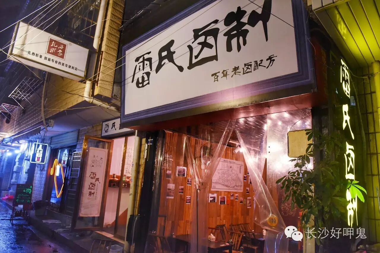 一间怀旧的卤味新店,乡下的木桌椅、28单车的摇铃、长沙的老街地名、儿时的橘子汽水...雷氏卤制将长沙味和卤味都做到了极致。对于熟客来说,必须先来一波老三样:牛串、鸡杂和兰花干!酱汁牛串辣味最浓郁,汤汁里添上了印度辣椒,泛着红油光,表面撒上芝麻,出香。牛肉是新鲜的,只有酱料里加上了一点卤水,所以卤味淡淡的。再加入了一些红糖,辣过之后又有微甜。同样汁水充足的鸡杂,光是看着那油料就口水泛滥,会吃到一点孜然味。大多长沙人都对兰花干情有独钟,而这道最考验对火候的掌控,太软或太硬都不对味。一半咯呲脆,一半浸入汁水,咬的时候酱汁蹦出的感觉才是最棒的!