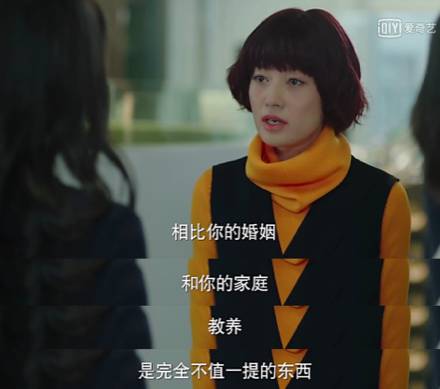 面对小姑娘的指责,她说:“有一天你到了我的年纪、我的处境,你就会知道,相比你的婚姻和你的家庭,教养,是完全不值一提的东西。”