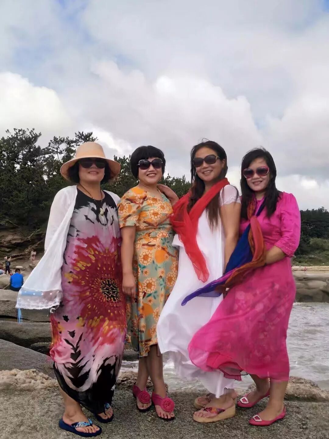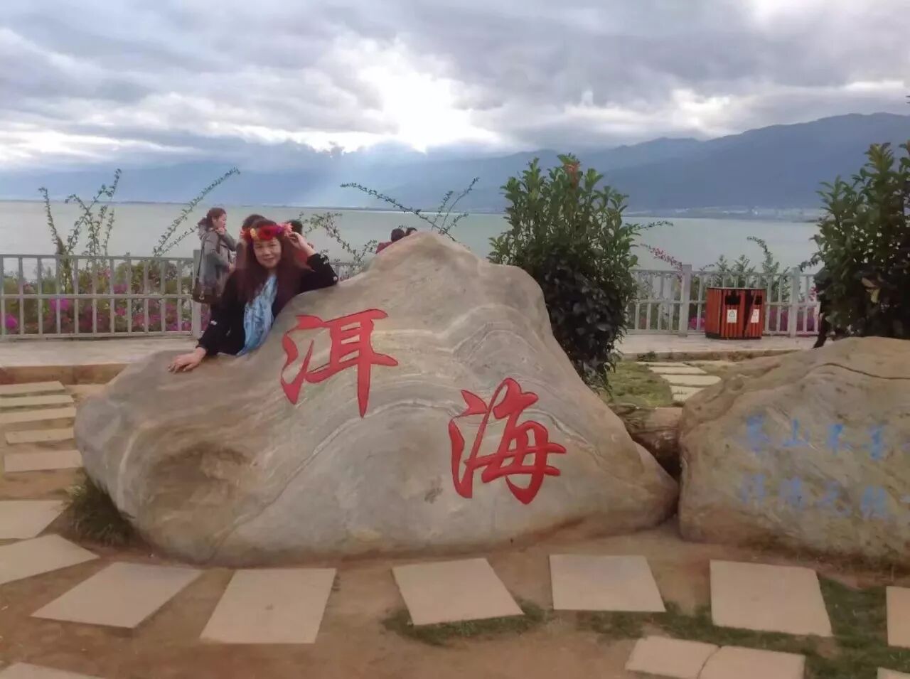 除了公共厕所以外,任何刻了字的石头、牌匾她们都一定要合影留念。