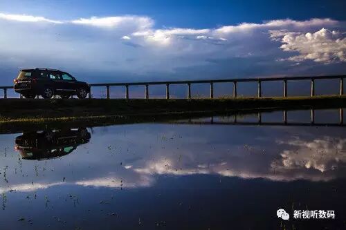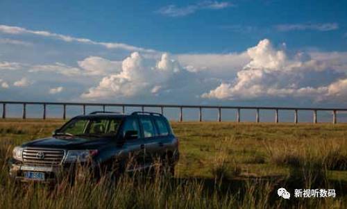 而在之后的两个小时里我充分感受到了LC200卓越的越野能力带给我的惊喜,因为周边出现的风景让我们离开了道路。一望无际的风力发电风车矗立在草原丘陵之上,而我为了能够更进一步地看到它们,驾驶着LC200义无反顾地冲向了草原。此时,我甚至不需要挂上4L(低速4驱)便开始驾驶着LC200在草原丘陵之上横冲直撞,奔向大风车。当我翻过两个丘陵时,我又发现了一架延伸至天际的铁路桥和一片映照着蓝天白云的安静水面。没什么可说的,前进。而当我们真正来到水边时(它的名字硝泡子),太阳已经开始为云彩勾上金边。湿软泥泞的岸边并不能带给我丝毫的阻滞,和我一起的摄影师在此时抓拍下了你在城市中绝无可能看到的美景。