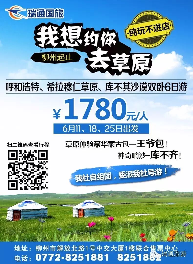 【我想约你去草原】¥1780 呼和浩特、希拉穆仁草原、库不其沙漠纯玩双卧6日游(柳州起止)6月11、18、25日我社自组团