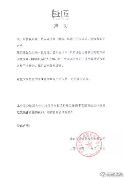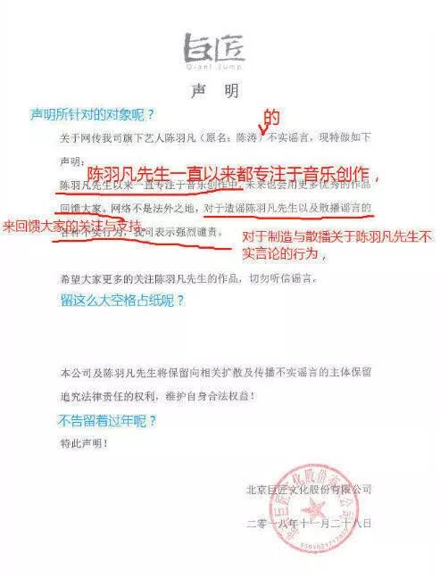 没办法,有太多声明看起来就很不专业,连公司印章都没有,看上去还经常各种语病,常常出现粉丝在线为工作室修改语病的事情,比如陈羽凡工作室的声明,也被粉丝“批改”过。