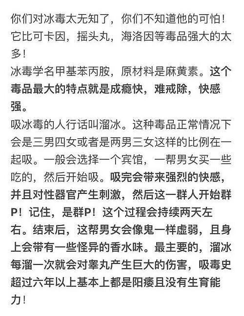 而陈羽凡吸的也不是普通的大麻之类的毒,而是非常非常可怕的“冰毒”,复吸率几乎是100%,很难戒掉。再次提醒大家一定远离毒品!