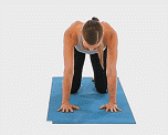 四角跪姿,双脚脚尖回勾,吸气准备;