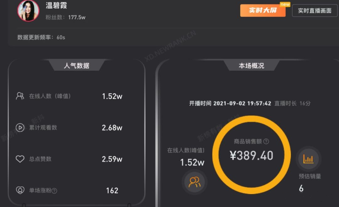 其次温碧霞的带货战绩也仅仅只有389.4元,这很有可能是因为她中途离场所导致的。