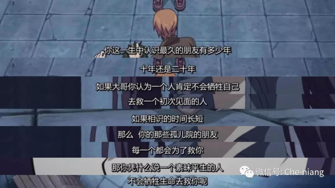 引来苏瑾的反问:“你这一生中认识最久的朋友有多少年,十年还是二十年,如果大哥你认为一个人肯定不会牺牲自己,去就一个初次见面的人,如果相识时间的长短是判断一个人是否会救你的标准,那么你的那些孤儿院的朋友,每一个都会为了救你放弃生命吗?那你凭什么说一个素味平生的人不会牺牲性命去救你呢?”潜台词是:人与人之间的互帮互助不是认识时间长短决定的,而是人本身决定的。于是丢出——敌人or战友的选择题,最后三人结盟形成互帮互助小团体。