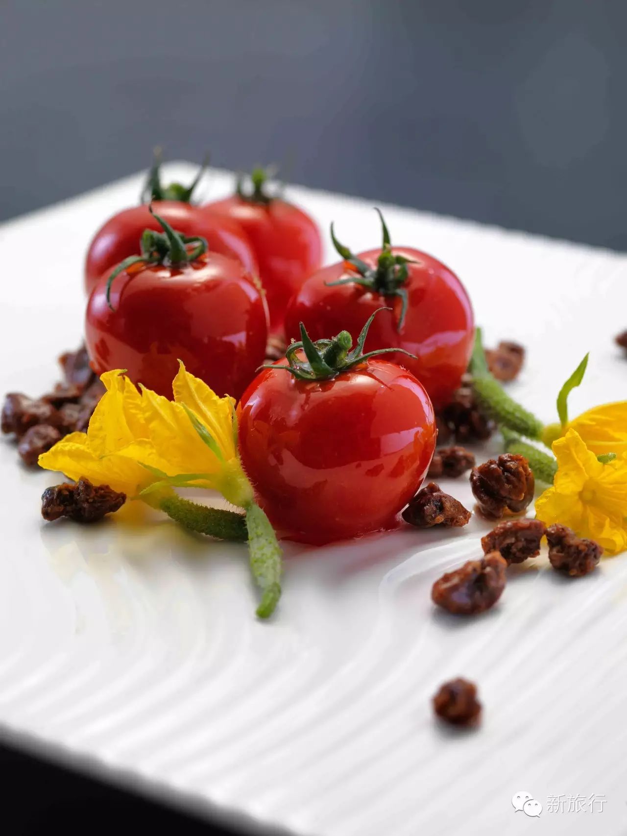 美丽的三亚珊瑚湾畔,艳阳高照,海风轻拂,正值三亚文华东方酒店 “大董美食节”火热进行中,名厨大董与著名美食主持沈星搭档,亲手为大家做了几道菜。有番茄脆茹沙拉: