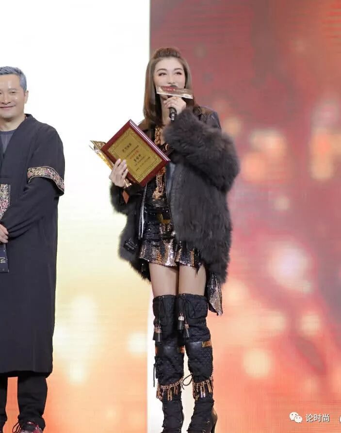 李彩桦这次在台上穿着一件黑白的豹纹外套,披着这件外套,看着超级宽松,在里面选择了银色亮片裙子,增加了休闲感,她的身材真好啊,戴着比较夸张的耳环,真的不会耳朵疼?