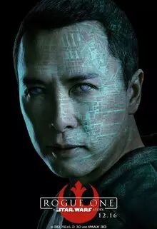 奇鲁特·伊姆韦 | 甄子丹 一位失明的原力敏感者,但不是绝地,依靠自己的精神克服了失明,成为一名强大的战士。虽然绝地已不再保护银河系,但他依然坚持绝地的信仰。 | |