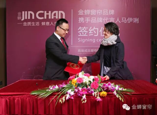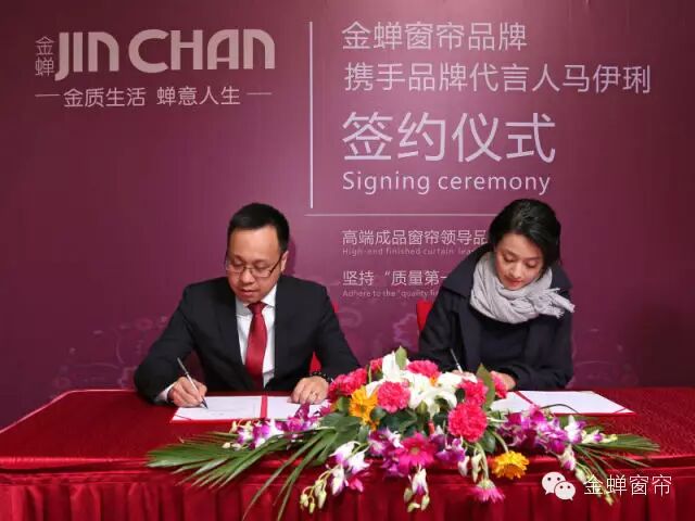 2016年3月24日,“金蝉窗帘携手马伊琍,品牌代言签约仪式”在北京隆重举行。著名影视明星马伊琍、浙江金蝉布艺股份有限公司总经理杨伟及金蝉高层,出席了本次活动。