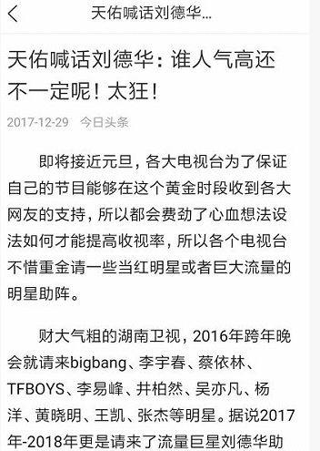 刘德华都敢碰?天佑再登新闻头条,被指怼刘德华:谁人气高还不一定呢?老利私下给崔阿扎发huang片!看没看? 众悦八卦 港台男星 2017-12-30 18:59:46 680 创作不易,用心坚持,欢迎请BaGua喝几杯爱心咖啡!打赏并支持本文 打赏并删除本文 点击上方"众悦八卦"关注我网易今日头条等三家媒体报道,天佑在直播间怼刘德华,因听说刘德华要去湖南卫视跨年,天佑怒怼:年轻人的天下,谁人气高还不一定呢!小编并未见到YY新闻媒体的报道,不敢随意评价。 老利连麦崔阿扎,说自己给阿扎发黄片,阿扎也看了...崔阿扎:你都快当爷爷的人了,还能总看那个?? 创作不易,用心坚持,欢迎请BaGua喝几杯爱心咖啡!打赏并支持本文 打赏并删除本文 感谢您的支持鼓励,我会继续努力的!文章地址:用户邮箱:打赏金额:USDT 请输入数字点击”去打赏“,即可进行打赏支持本文章哦 刘德华 About the Author 众悦八卦 功能介绍:每日更新:最新影视,网红八卦,YY八卦,直播新闻,主播八卦,娱乐资讯,娱乐节目,我们生产快乐,传递快乐,请持续关注! Related Posts 实力歌手李宗盛将为芮甜甜写歌?挺哥现实认识?舍得大爷儿子大婚~漂亮新娘帅气新郎曝光 2018-10-29 17:30:39 刘德华都敢碰?天佑再登新闻头条,被指怼刘德华:谁人气高还不一定呢?老利私下给崔阿扎发huang片!看没看? 2017-12-30 18:59:46 阿哲爆料巡查组人数高达100人!喊话八卦主播:别提我,要不然我比谁送你们进去都快!阿哲提主持欢迎事件:你拿人当人就得欢迎啊! 2017-10-17 19:04:47 发表评论