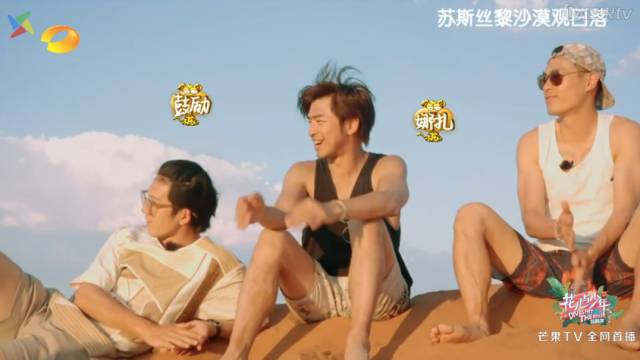 去红沙漠看日落前,因为车陷沙漠,花少团先看的是杨妈妈牌日落,想起加起来超过100多岁的8个人竟然会言听计从,做出这么幼稚的举动,不可思议式的可爱
