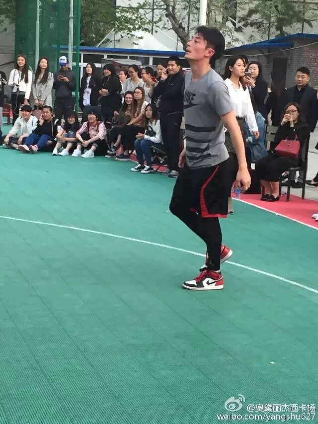 当晚霍建华一身运动装打扮,打篮球的动作也是相当娴熟。