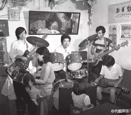 上世纪80年代,北京歌舞团成员组成的“七合板”摇滚乐队。阵容中,除了崔健之外,还包括了著名的萨克斯手刘元,以及杨乐。